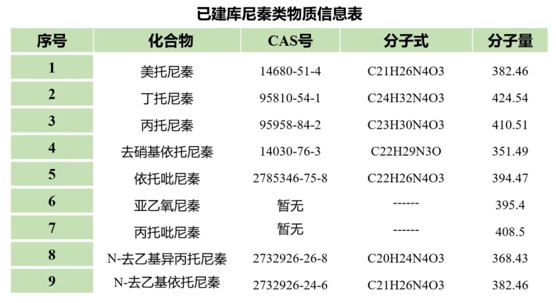 针对当前毒品滥用形势的动态变化,华仪宁创小型化质谱仪作为禁毒关键技术装备,正持续快速强化其检测应用能力。仪器目前已完成美托尼秦离子、亚乙氧尼秦离子、N-去乙基依托尼秦离子、N-去乙基异丙托尼秦离子谱图等尼秦类物质数据库建设,可精准识别对应列管药品,随时响应一线实战征召。其余列管药品正在快速建库中,确保小型化质谱仪检测应用与管制政策同步。
