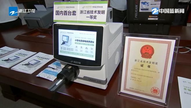 直接电离质谱仪2024年荣获浙江省技术发明一等奖,是团队历经11年依托国家重大科学仪器、公共安全、食品安全等重点研发计划项目自主创新成果,目前已广泛应用于公安禁毒、食品安全、法医毒物等领域的现场快速检测,相比传统胶体金等快检技术具有测得多、测得准、通量高等优点,是快检领域的新质生产力,作为我国自主知识产权检验检测装备的代表成果被中央电视台新闻联播报道。