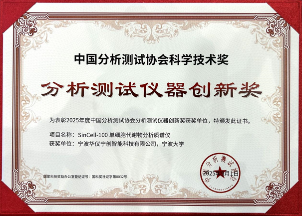开幕式当天,宁波华仪宁创智能科技有限公司自主研发的单细胞代谢物分析质谱仪凭借技术创新与产业应用价值,斩获“2025年度分析测试仪器创新奖”。该奖项的获得不仅彰显了国产高端科学仪器的突破性进展,更标志着我国生命科学前沿研究装备自主化迈出关键一步。